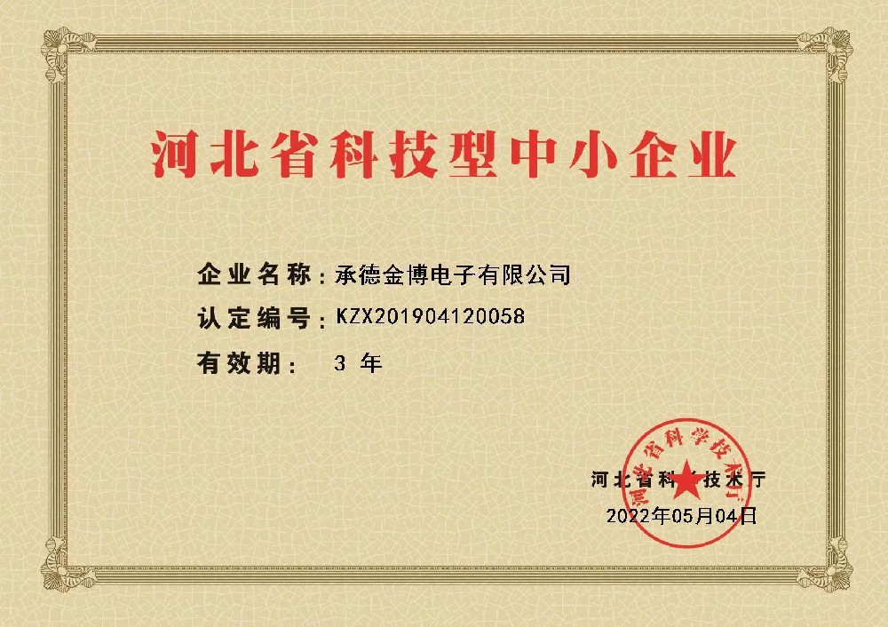 喜訊!熱烈祝賀承德金博電子有限公司再次獲得河北省中小企業認定